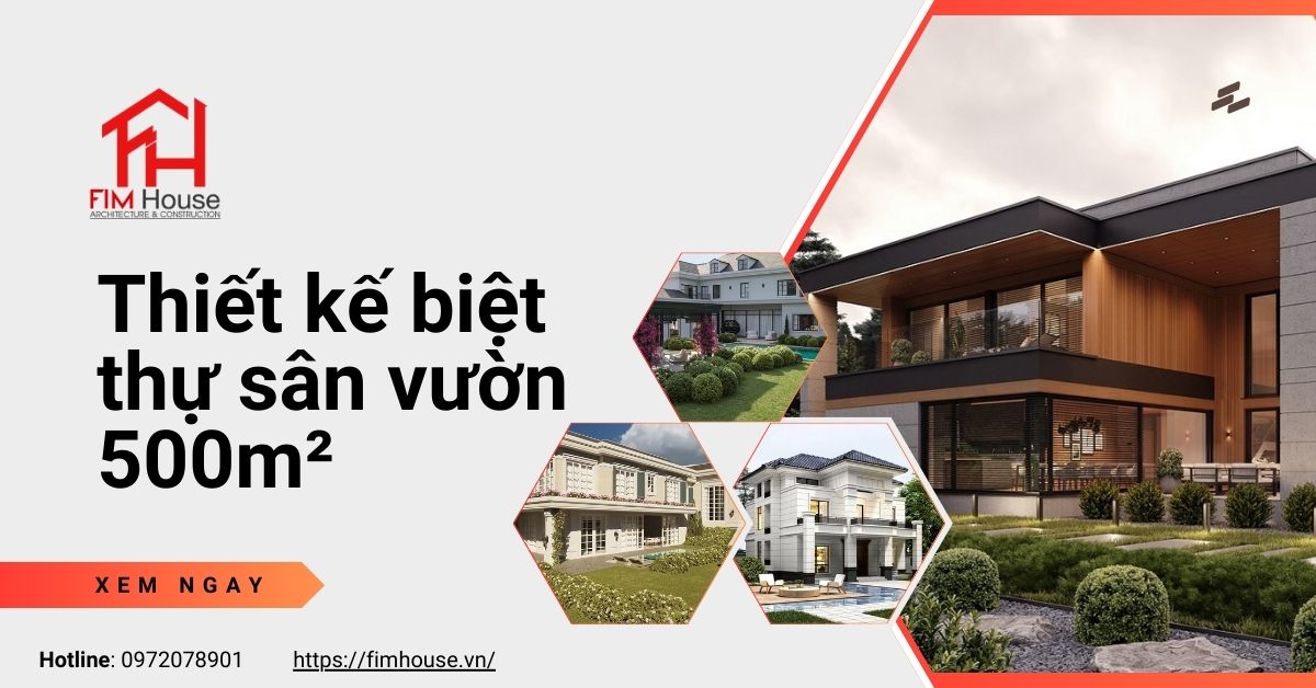 Thiết kế biệt thự sân vườn 500m2 phong cách châu Âu đẹp