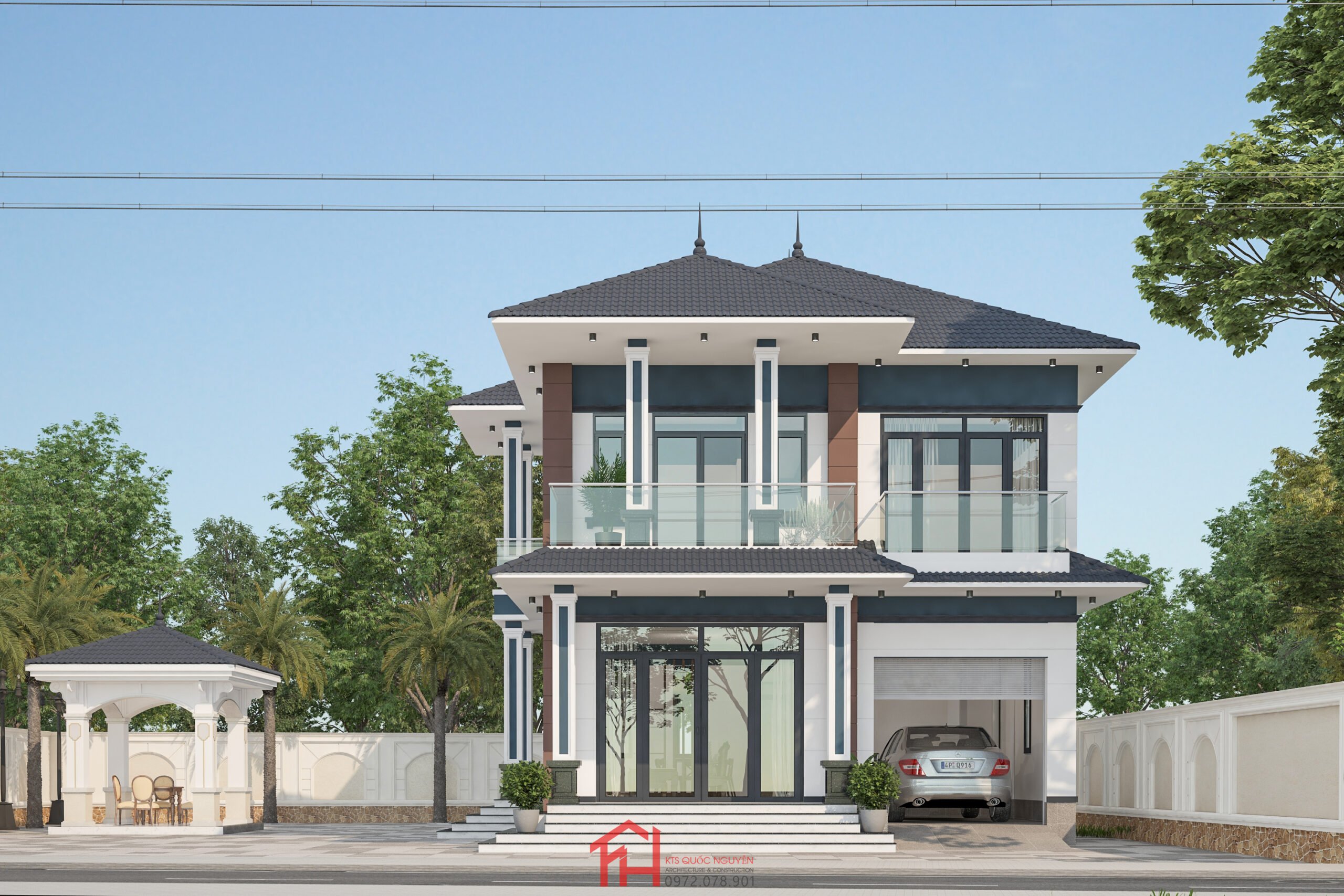 Mẫu thiết kế nhà phố 2 mặt tiền quy mô 1 trệt 2 lầu 1 tum